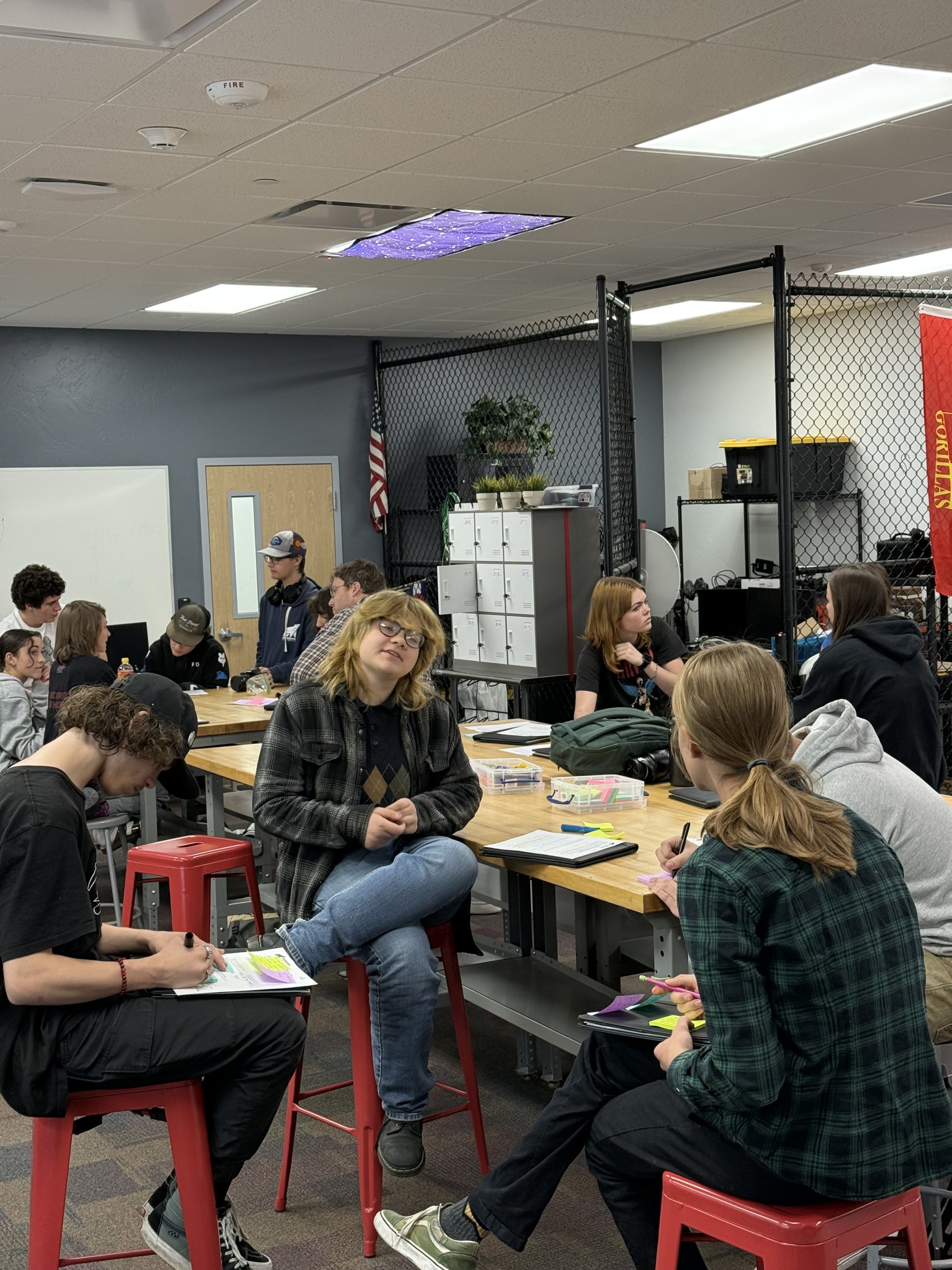 Spark Lab innovators at Olathe High School work to refine their ideas and build out their 2-minute pitches.